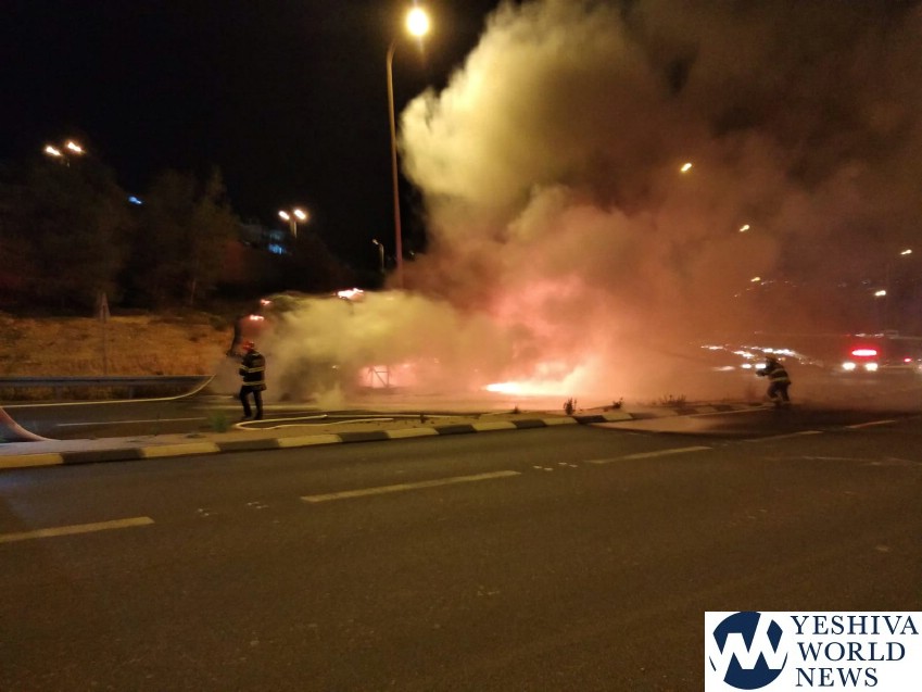 A passenger bus caught fire while traveling near the Jerusalem-Tel Aviv Highway in the area of N’vei Ilan on Tuesday, 19 Kislev. B’chasdei Hashem, the fast response and professional efforts of firefighters, with Siyata Dishmaya, prevented the blaze from spreading to the nearby forest.