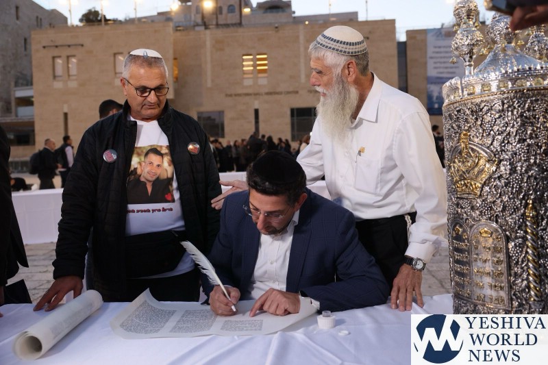 In a deeply moving ceremony at the Kosel, dozens of families of hostages and Oct. 7 victims came together to initiate the writing of dozens of Sifrei Torah. The ceremony,