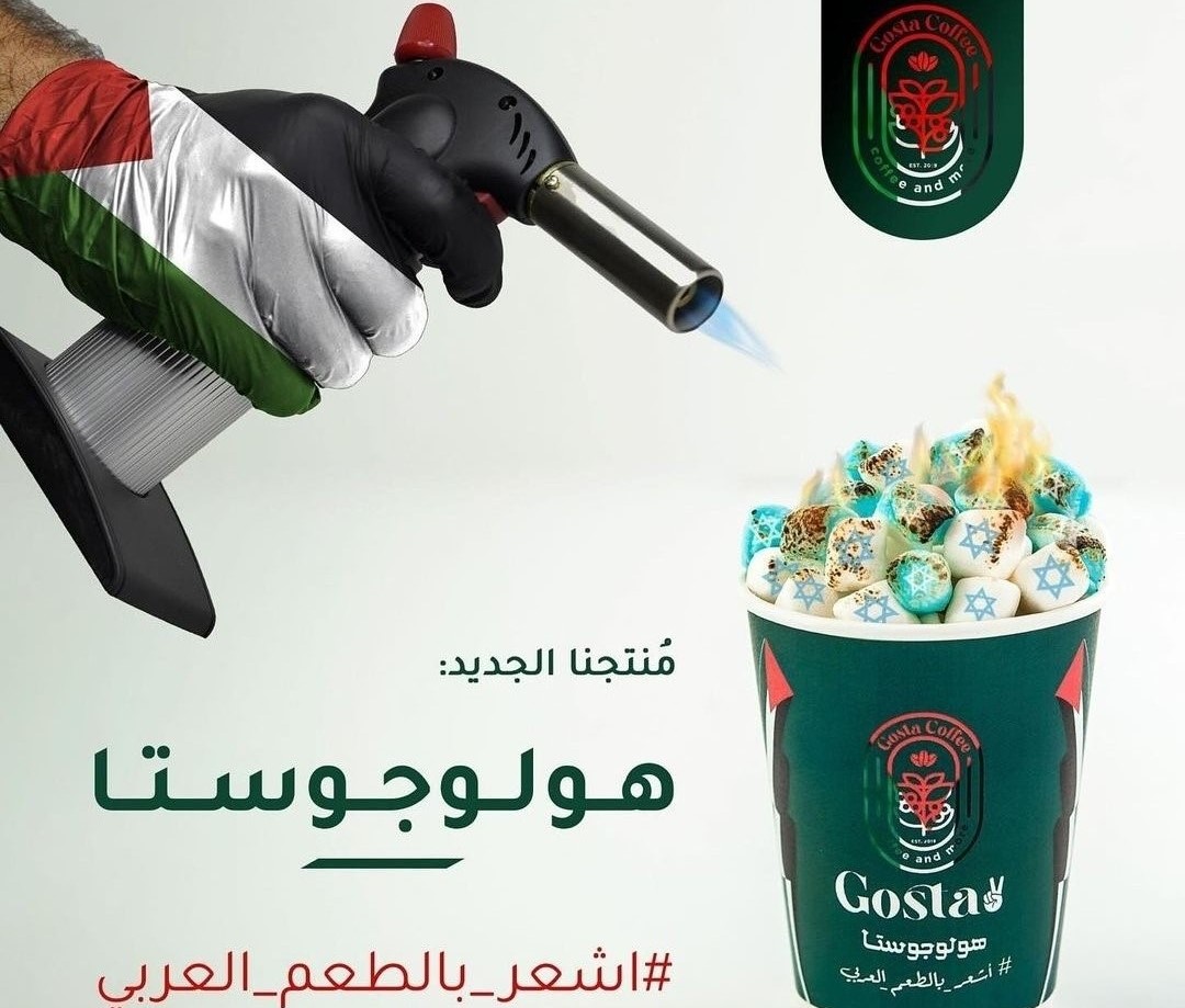 Gosta Coffee, a coffee shop in Jordan has launched a new product in recent days, the Holo-Gosta coffee [a combination of the word Holocaust and its name], which features burning