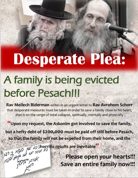 Rav Avrohom Schorr; A Family Being Evicted Before Pesach!! ALL DONTIONS ARE MATCHED CLICK HERE TO DONATE CLICK HERE TO DONATE