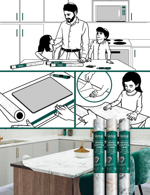 In the midst of your Pesach preparations, don’t overlook your kitchen counters. The new and improved Dekal Kosher countertop liners are easy to apply and even easier to remove and
