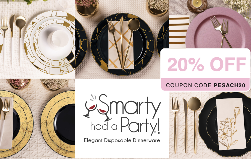 Get smart with Smarty and check out our Pesach In A Box packages! Stop trying to fit disposable products into your suitcases, and don’t worry about calculating exactly how many