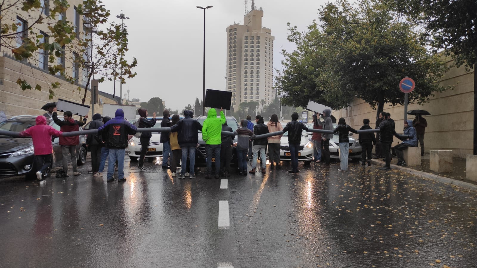 A small group of left-wing protesters from the “Blocking the Coup” movement obstructed the road leading to the Finance, Interior, and Economy Ministries on Tuesday morning. The protesters chained themselves