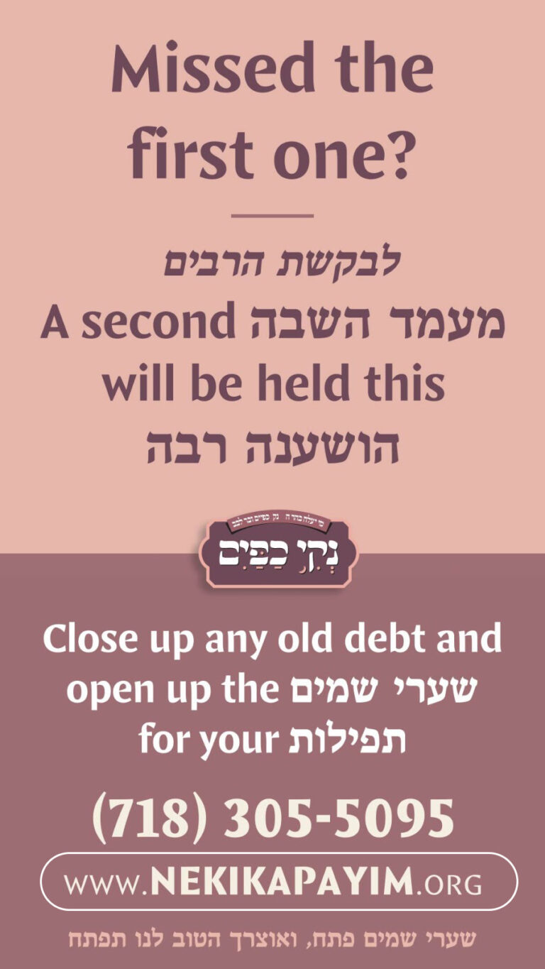 TODAY!! Missed The First One? Hoshana Raba MAAMAD HASHAVA!!! A second MAAMAD HASHAVA!! by Neki Kapayim will be held this Hoshana Raba!! Forgotten Debt?* Damaged A Car? *Return An Item??