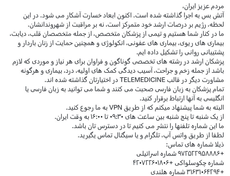 Israel’s Mossad agency has proffered an offer of free telemedicine to residents of Iran injured during Operation Rising Lion. The offer was extended on the Mossad’s brand-new Farsi-language X account,