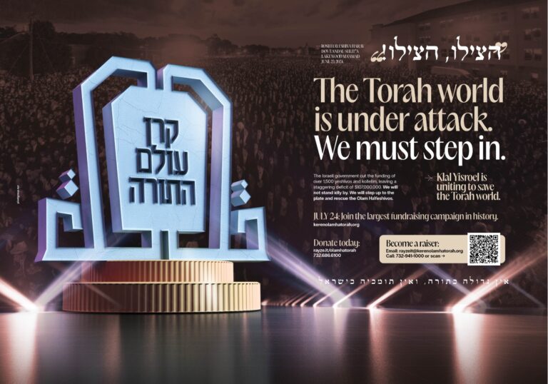 In an unprecedented move, the leading gedolim of Eretz Yisroel have launched Keren Olam HaTorah, the largest fundraising campaign in Jewish history. This monumental effort comes in response to devastating