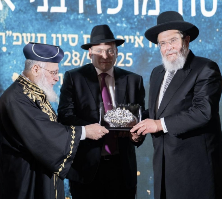 Israel Chief Rabbis Recognizing R’Duvi Honig; L-R Chief Rabbis of Israel — Rabbi Yitzhak Yosef (Sephardic) Duvi Honig Founder /Ceo Orthodox Jewish Chamber of Commerce and Rabbi Kalman Ber (Ashkenazi)
