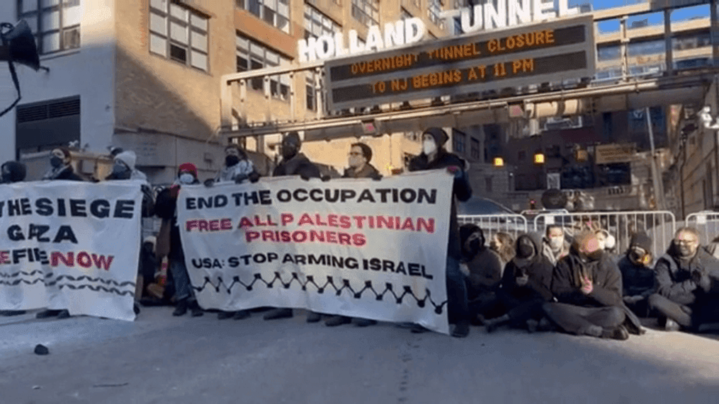 Dozens of anti-Israel protesters created significant disruptions in Lower Manhattan on Monday morning, leading to the blockade of three major bridges and the Holland Tunnel. The protest, titled “Shut it