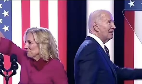 A video shared by RNC Research’s account captured a moment at the end of President Joe Biden’s speech near Valley Forge, Pennsylvania, during which he commemorated the Jan. 6, 2021,