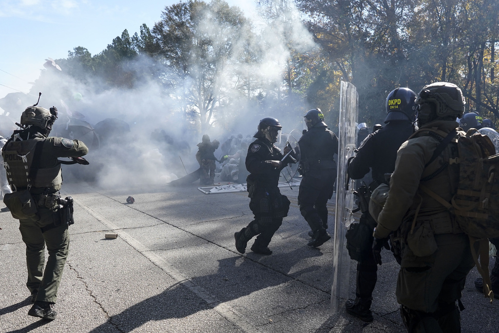 Police used tear gas and flash-bang grenades Monday to halt a march against building an Atlanta-area police and firefighter training center that opponents call “Cop City.” More than 400 people