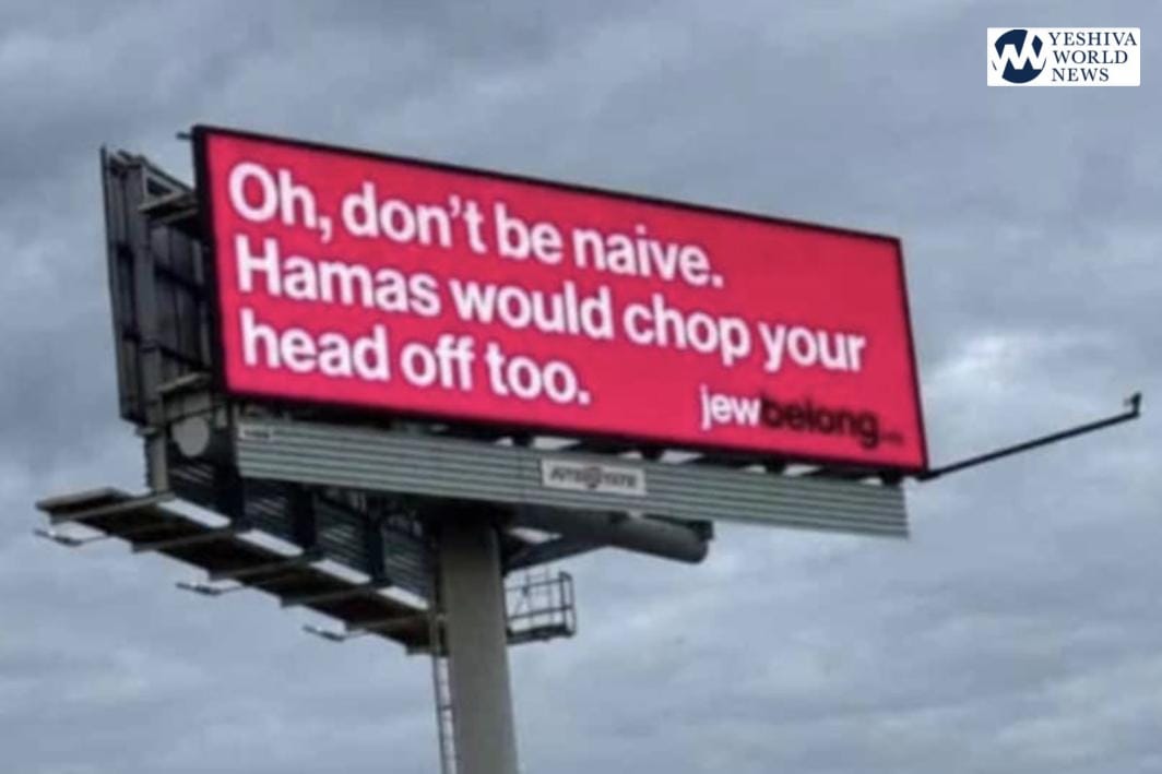 An attention-grabbing anti-Hamas billboard that was placed on Route 80 in Bergen County, New Jersey, was taken down after police received more than 100 complaints about it. The billboard read: