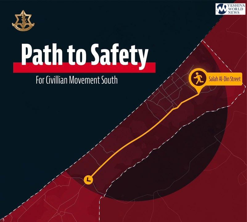 The Israeli military urged Gazan civilians to flee southward along a specified evacuation route on Sunday, clearing out a 3-hour window in which the IDF would not fire on the