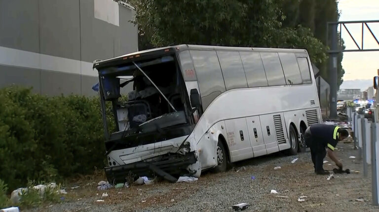 One person was killed and 32 people were injured, including two critically, when a tour bus and a sport utility vehicle collided on a Los Angeles area freeway early Sunday,