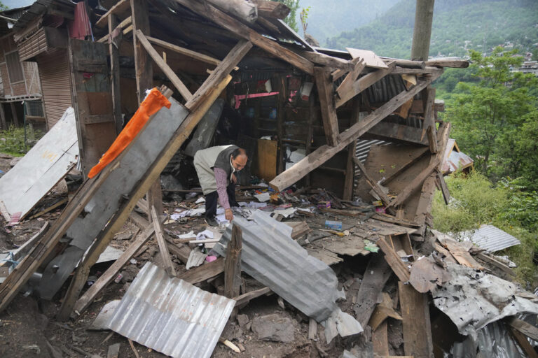 Indian and Pakistani soldiers exchanged heavy volleys of shells and gunfire across their frontier in Kashmir overnight, killing at least five civilians in a growing military standoff that erupted following