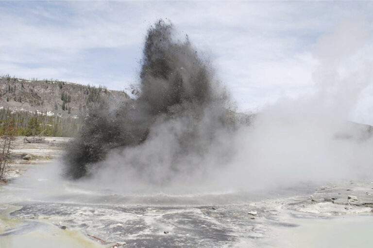 A surprise eruption that shot steam, water and dark-colored rock and dirt dozens of feet into the sky Tuesday sent people running for safety in Yellowstone National Park. The hydrothermal
