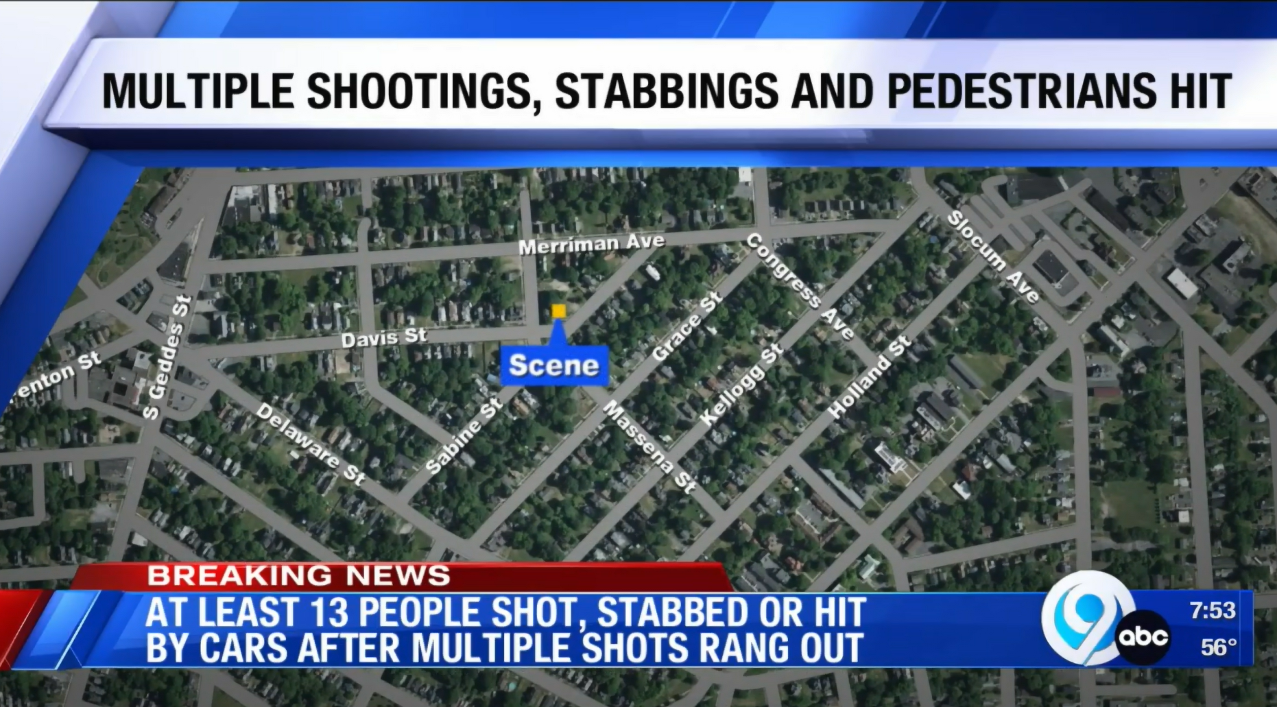 A street party that attracted hundreds of people turned violent early Sunday in Syracuse, New York, leaving at least 13 people injured, authorities said. At least four people suffered gunshot