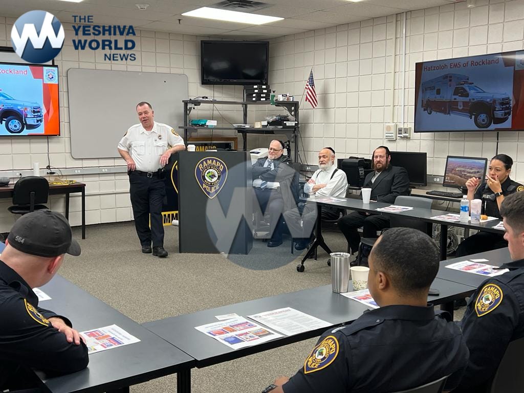 For the first time since the Covid-19 pandemic, four Jewish organizations attended a Wednesday morning Ramapo Police roll-call, including Chaverim of Rockland, Hatzolah of New Square, Hatzolah of Rockland, and