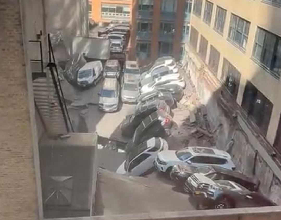 A parking garage collapsed Tuesday in lower Manhattan’s Financial District, killing one worker, injuring five and crushing cars as concrete floors fell on top of each other like a stack