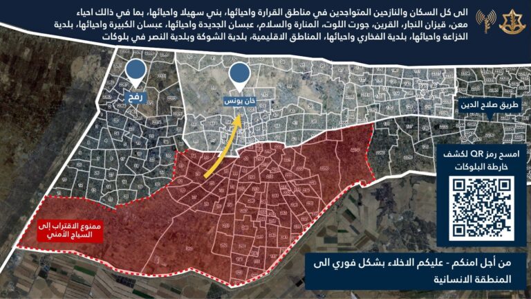 Following the launch of 20 rockets at southern Israel from Khan Younis on Monday morning, the IDF on Monday evening ordered Gazans in eastern Khan Younis to evacuate the area.