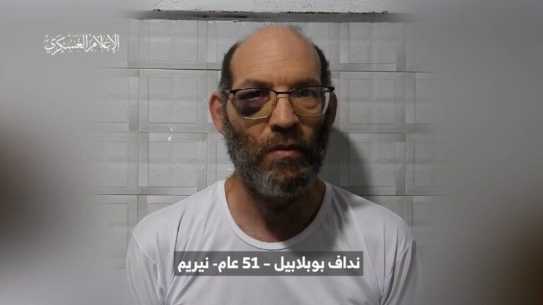 The Hamas terror group on Shabbos released a video of hostage Nadav Popplewell, who was abducted from Kibbutz Nirim on October 7th. The video is the first sign of life
