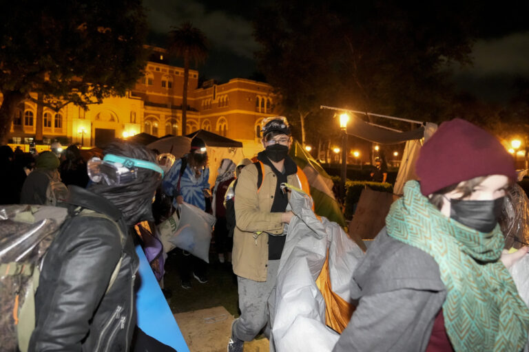 Students protesting the war in Gaza abandoned their camp at the University of Southern California early Sunday after being surrounded by police and threatened with arrest, while Northeastern University’s commencement