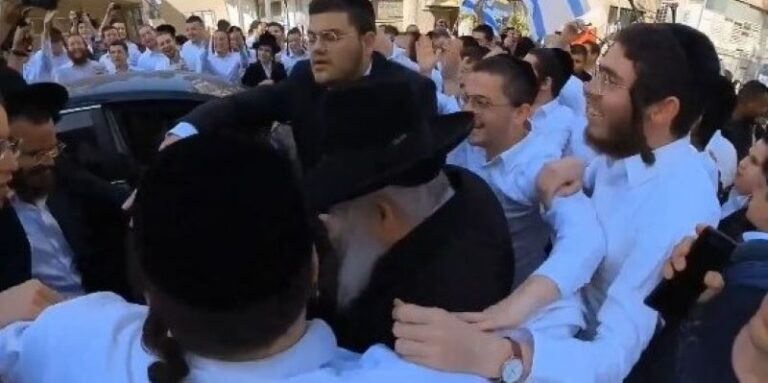 A group of leftist anarchists calling for the recruitment of yeshivah bochurim protested outside Yeshivas Slabodka in Bnei Brak on Friday morning and made a racket with shouts and bicycle