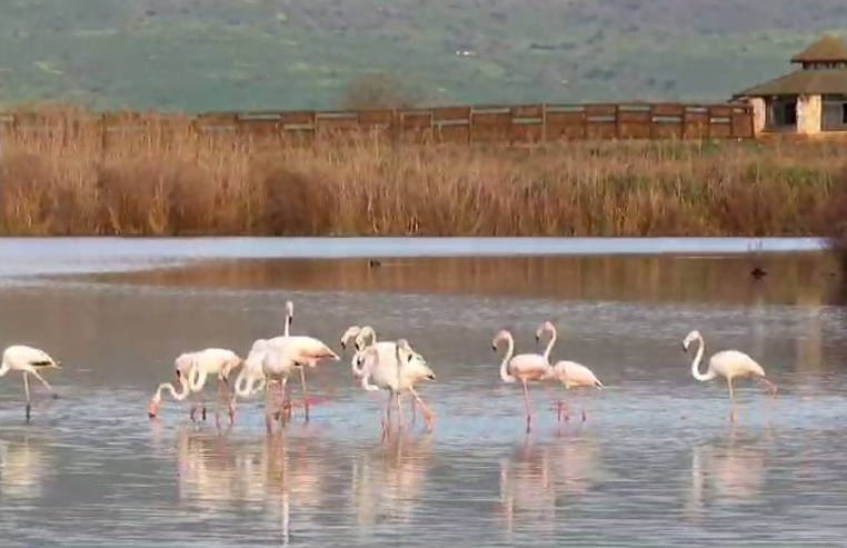 In the first sign of the upcoming autumn in Israel, about 30 flamingos arrived at the Hula Reservoir on Thursday morning, launching the migratory season. Inbar Shlomit Rubin of KKL-JNF,