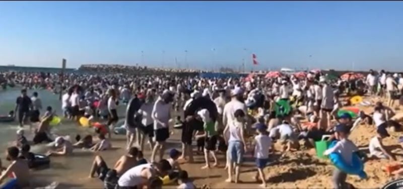 Journalist Avi Ravina posted a video this week of the men’s section of a separate beach in Ashdod that is overcrowded with hundreds of men and boys in a small