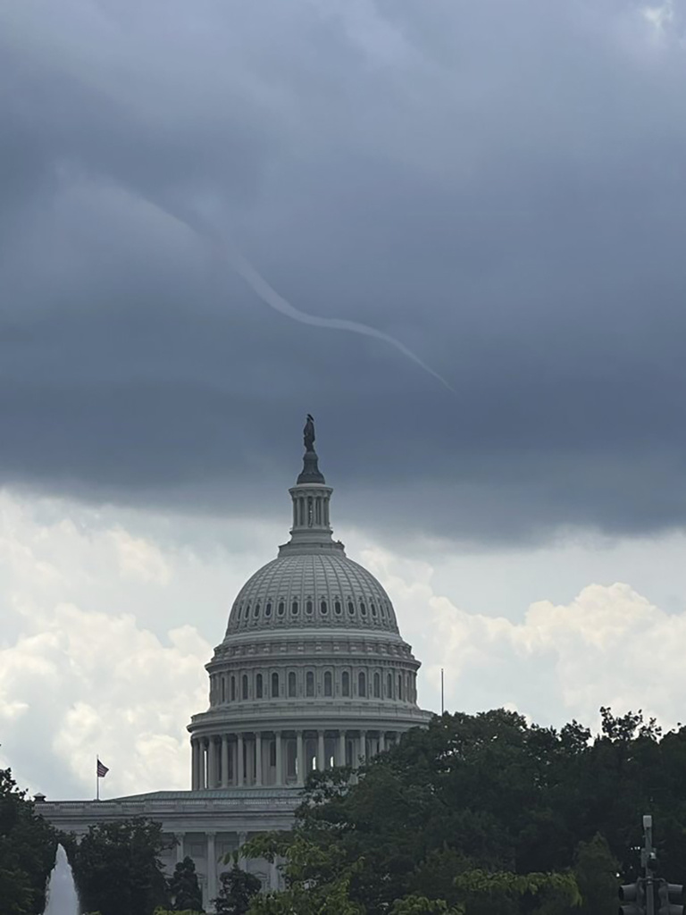 Observant visitors to the area around the U.S. Capitol building on Tuesday afternoon were treated to a unusual sight: the unmistakable shape of a funnel cloud extending diagonally from the