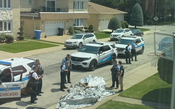 An emergency evacuation slide detached from a United Airlines flight and descended into the backyard of a suburban home near O’Hare International Airport in Chicago, on Monday. The FAA reported