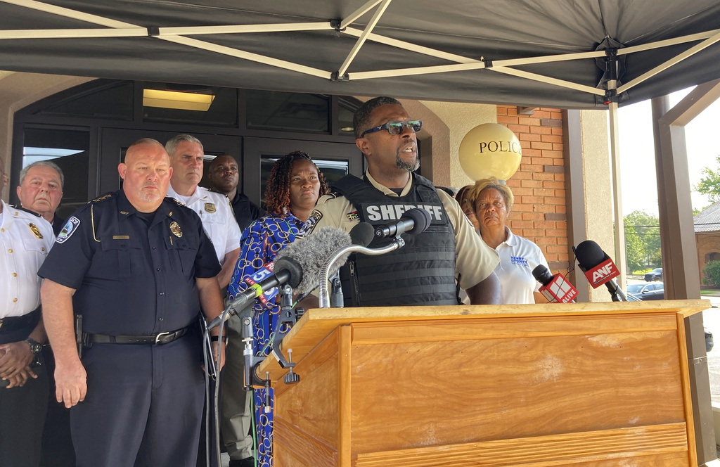 Officers on Sunday shot and killed a man wanted in four weekend killings near Atlanta during an exchange of gunfire, with a sheriff’s deputy and two police officers wounded while