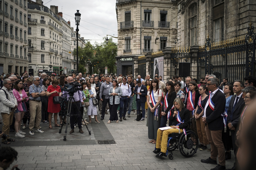 Crowds gathered at town halls across France Monday to show solidarity with local governments targeted in six nights of violence touched off by the fatal police shooting of a 17-year-old