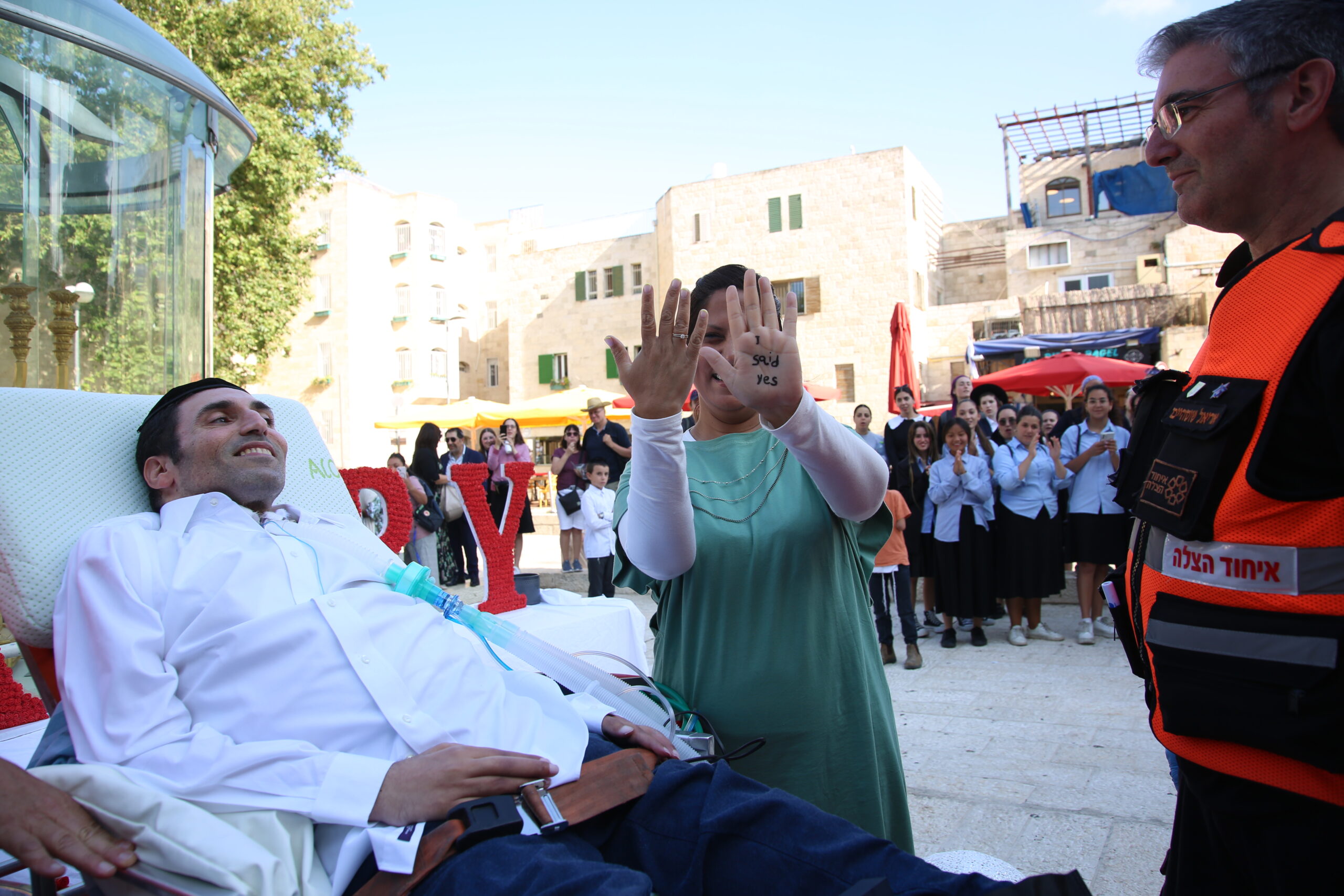 Jerusalem’s Old City witnessed a heartwarming and meticulously planned marriage proposal last week as Alon Paz, who is fully paralyzed and reliant on ventilation to breathe, proposed thanks to the