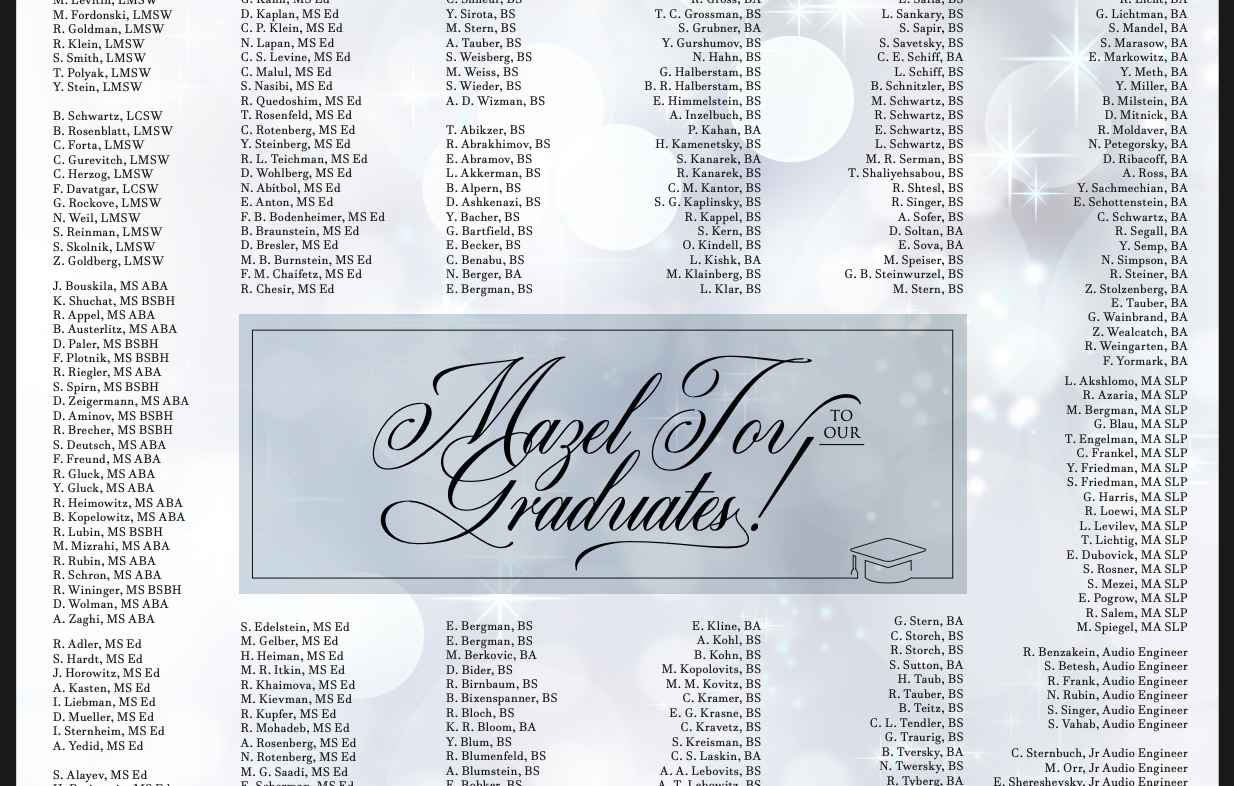 TTI would like to congratulate its impressive class of 2023 graduates. Their hard work and perseverance has paid off, and they are wished hatzlacha in future pursuits! Graduates are accomplished