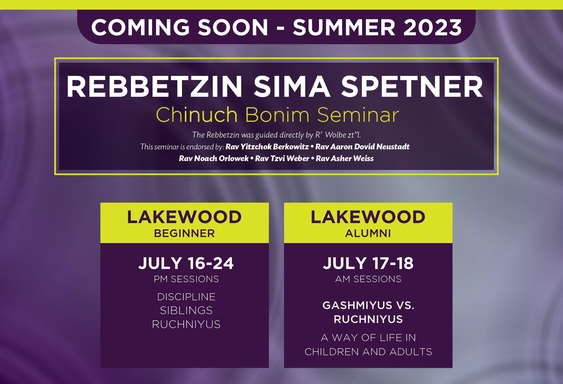 Join Rebitzen Spetner’s thousands of students from around the world who have transformed themselves, their homes, and their relationships with their children. Rebitzen Sima Spetner is a child psychologist and venerable