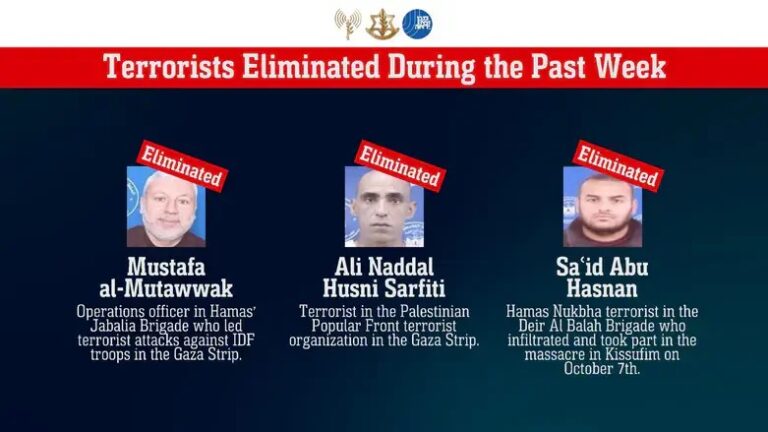 The IDF and Shin Bet eliminated three senior terrorists in the Gaza Strip over the past week, the IDF spokesperson revealed on Tuesday. One of the terrorists was Sa’id Abu