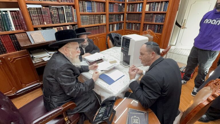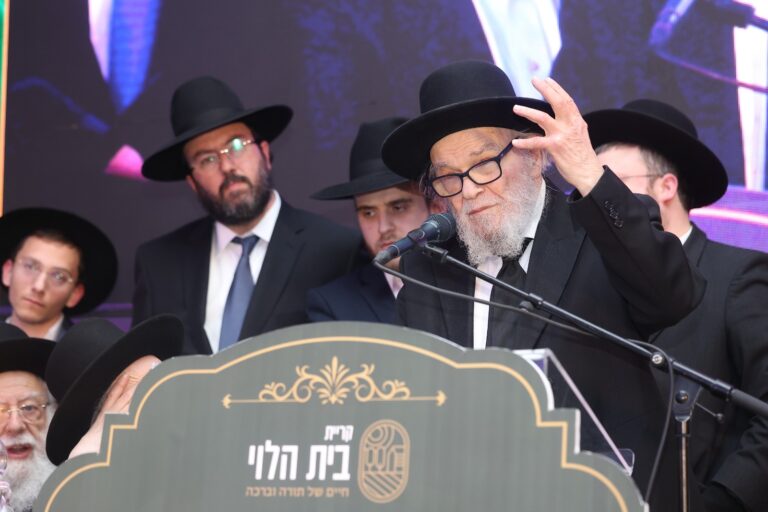 The Gadol HaDor, Hagaon HaRav Dov Landau shlit”a, Rosh Yeshivas Slabodka, emerged onto the balcony of his home on Rechov HaRav Sher during Chol Hamoed to address the throngs of