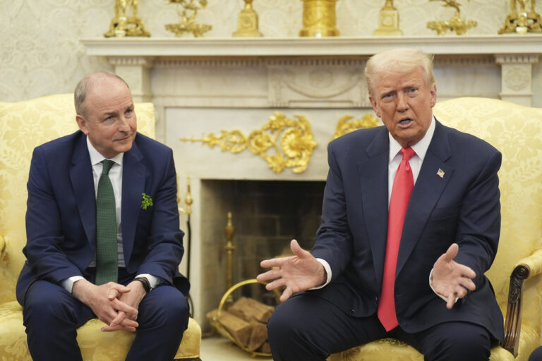 President Donald Trump welcomed Irish Prime Minister Micheál Martin on Wednesday for the annual St. Patrick’s Day celebration at the White House, where he added Ireland to the list of