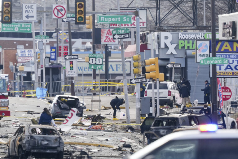 Authorities sifted through burned cars, damaged homes and charred debris Saturday to gather clues that might explain why an air ambulance exploded into a fiery ball as it crashed on