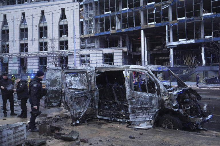 Russia attacked Ukraine’s capital with a barrage of drones and missiles Saturday, leaving at least three people dead, while industrial sites in Russia were set ablaze by Ukrainian strikes. Russia