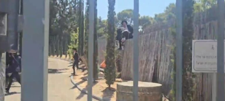 Extremist Chareidi protesters on Tuesday who were holding a protest against the Chareidi draft for the second consecutive day at the Tel HaShomer induction center in central Israel broke into