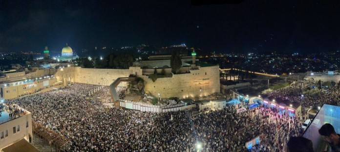 Tens of thousands of people gathered at the Kosel before midnight on Motzei Shabbos to attend the erev Yom Kipper Selichos. The Selichos began with HaTaras Nedarim. The Selichos were