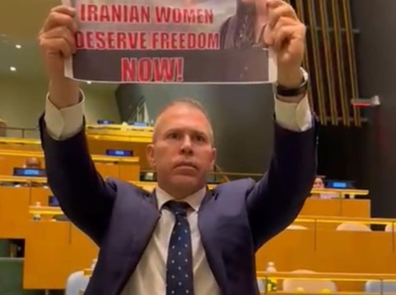 Israel’s Ambassador to the United Nations Gilad Erdan was the only diplomat who protested the speech of the “Butcher of Tehran” – Iranian President Ebrahim Raisi – at the General