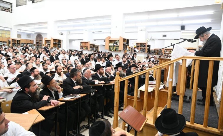 Rosh Yeshivas Slabodka HaGaon HaRav Dov Landau delivered a shiur at Yeshivas Mir in Yerushalayim on Tuesday. Following the shiur, the Rosh Yeshivah spoke words of chizzuk to the bochurim