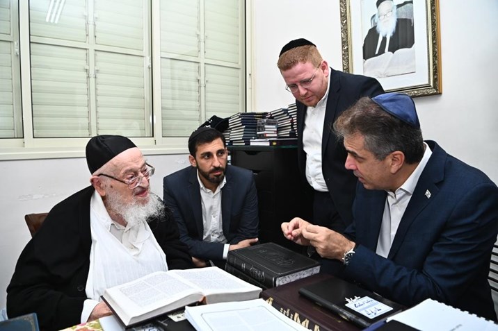 Foreign Minister Eli Cohen traveled to Bnei Brak the night before Rosh Hashanah to receive a bracha from HaGaon HaRav Meir Tzvi Bergman. At the start of the meeting, the