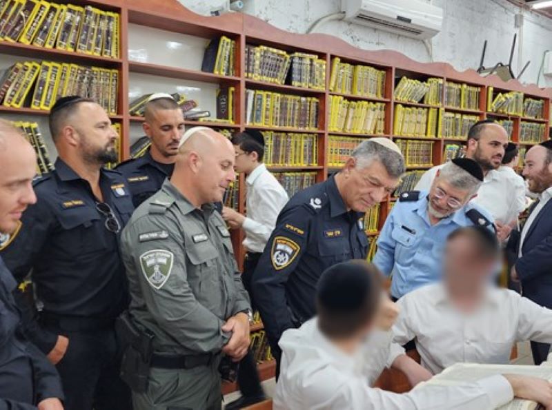 Tel Aviv District Commander Amar Peretz and the staff of the Dan Region Command visited the city of Bnei Brak on Sunday ahead of the Yamim Noraim. The officers visited