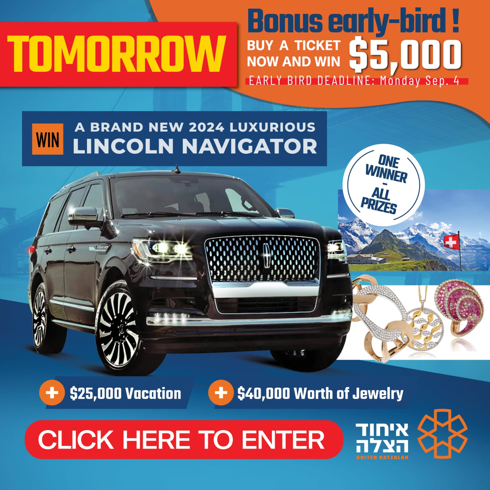 36 HRS LEFT!! BONUS RAFFLE Win 5K + WIN 2024 Lincoln Navigator!! Support Eli Beer – United Hatzalah CLICK HERE!