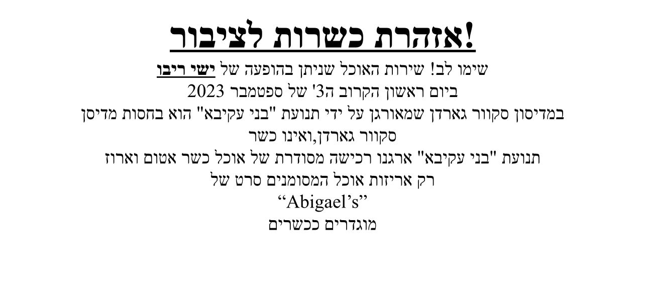 KASHRUS ALERT Please be advised that the food service being provided at the Ishay Ribo concert this coming Sunday at Madison Square Garden and hosted by Bnei Akiva is