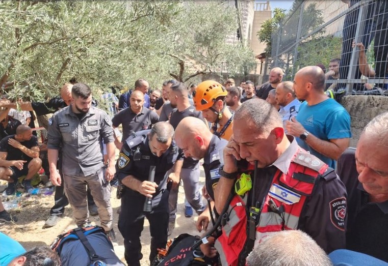 Two Israeli firefighters on Sunday fell into an eight-meter-deep pit and lost consciousness in the Arab town of Deir al-Asad in the Galil during a rescue attempt of a man