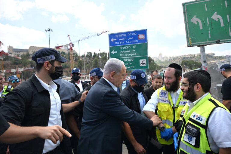 Prime Minister Binyamin Netanyahu visited the scene of the terror attack at the Ramot Junction in Jerusalem on Monday, in which six people were murdered and 16 people were injured.